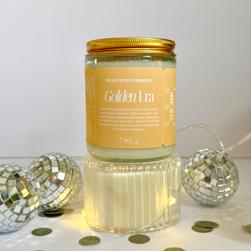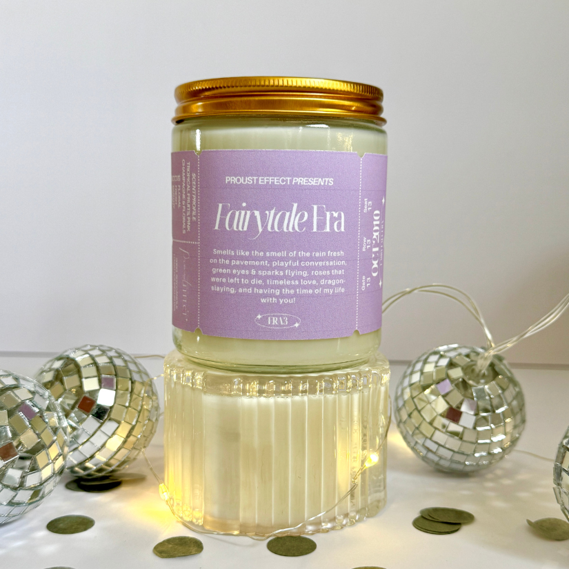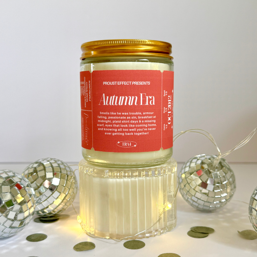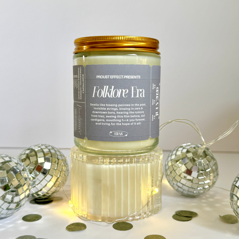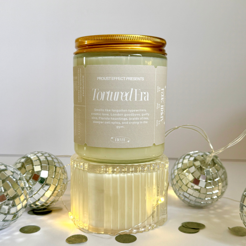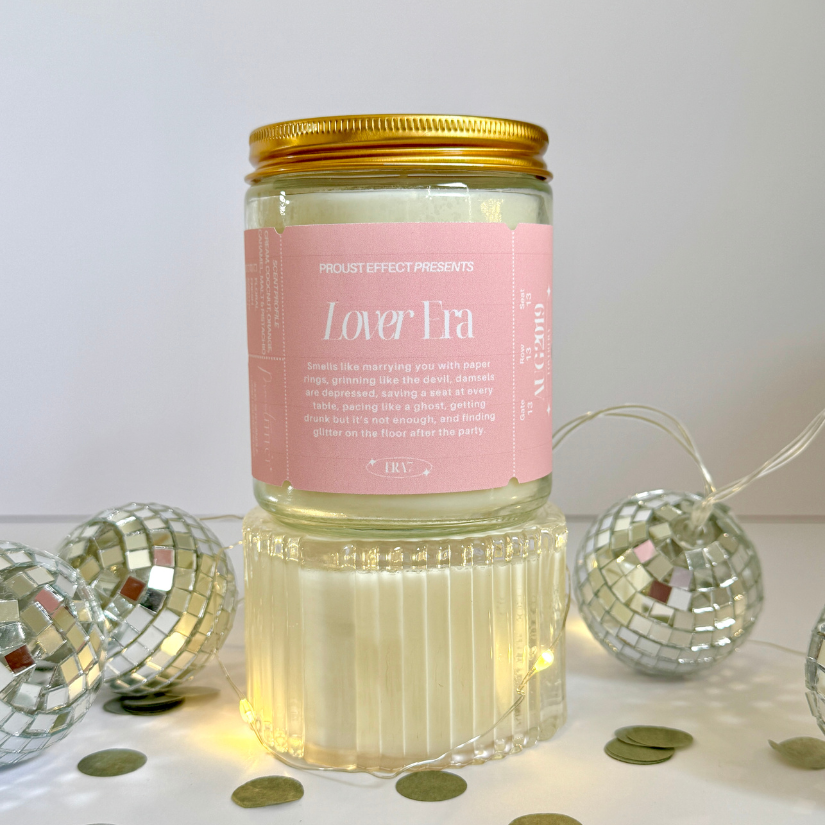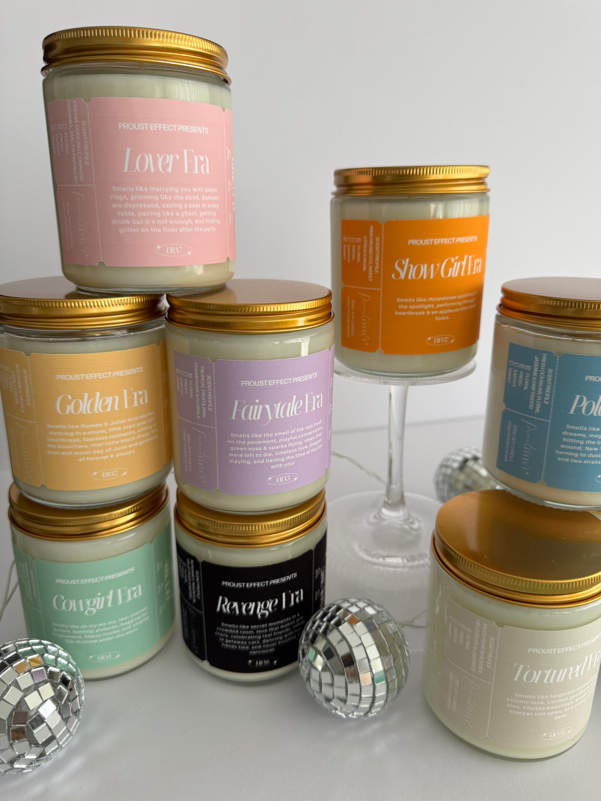 Each candle is inspired by a different era, thoughtfully paired with its own unique scent and concert ticket label design - a true anthology of our favourite album eras.